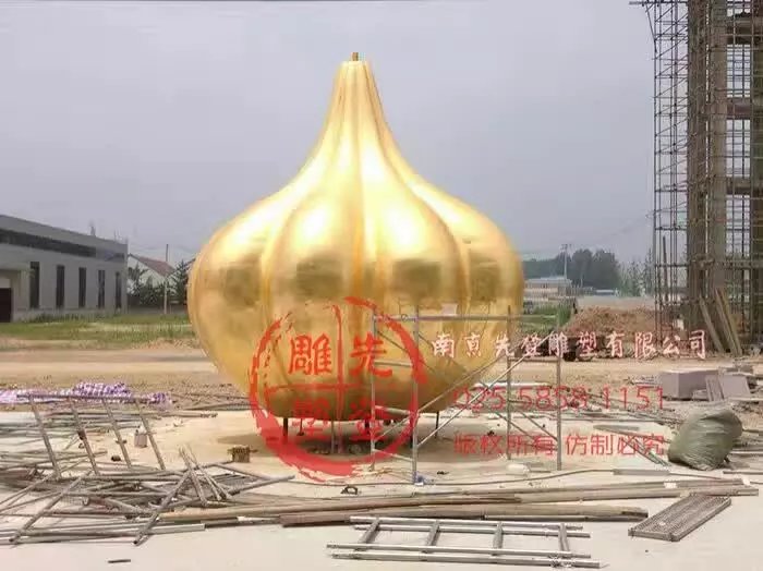 案例名稱:《不銹鋼大蒜》貼金大蒜雕塑