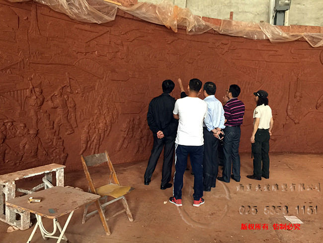 浮雕創(chuàng)作現(xiàn)場(chǎng),相關(guān)各機(jī)關(guān)領(lǐng)導(dǎo)蒞臨聽(tīng)取工程介紹