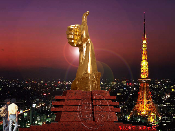 這個大拇指已被客戶分別預定定制材料分別為玻璃鋼、貼金箔、鑄銅成品。